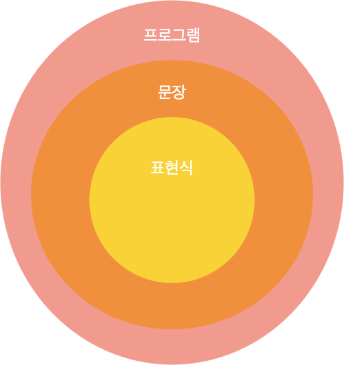 -문장(Statement) : 표현식이 하나 이상 모인 것