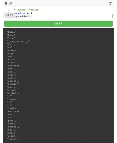 파이썬 3.9 기준으로 36개의 예약어가 있습니다.