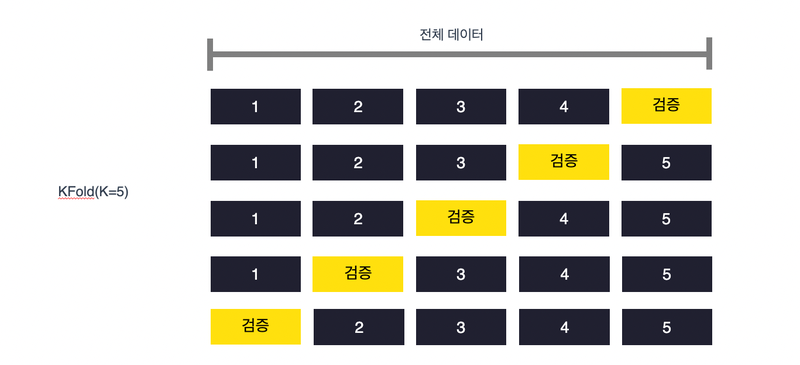 교차검증이란 여기서 train set을 다시 train set과 validation set으로 나누어 학습 중 검증과 수정을 수행하는 것을 의미합니다.
