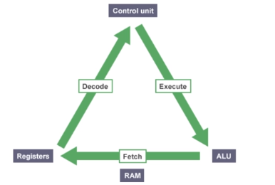 - 메모리에 있는 프로그램이 명령을 CPU로 보내는 fetch, CPU에서 해당 내용을 연산하고 처리하는 decode, execute, 다시 해당 내용을 메모리로 보내는 fetch까지 instruction cycle이라고 부릅니다.