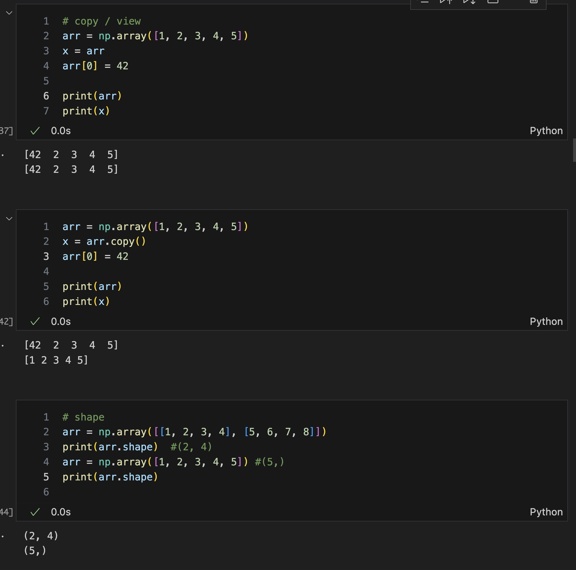 -자주 쓰이는 함수 중 하나로, x= arr 가 아닌 ,x= arr.copy() 를 쓰면 기존 arr이 업데이트 되는 걸 방지할 수 있다,